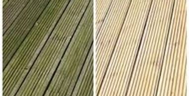Deep cleaning wooden surfaces using high pressure water to remove dirt, algae, moss and weather staining-restoring the natural look of the wood and improving the overall appearance of your garden.